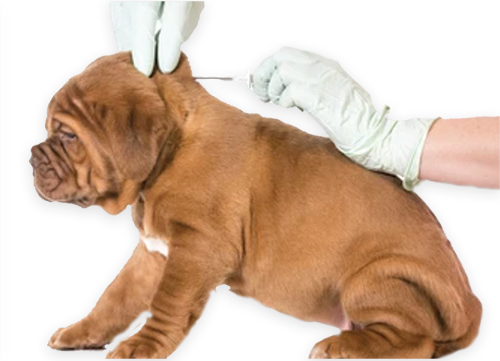 The needle containing the microchip is loaded into the application gun or syringe, and the "Service Dog" is positioned for the injection. The standard site for microchip placement is between the "Service Dog's" shoulder blades, (In the subcutaneous tissue along the dorsal midline of the spine). |